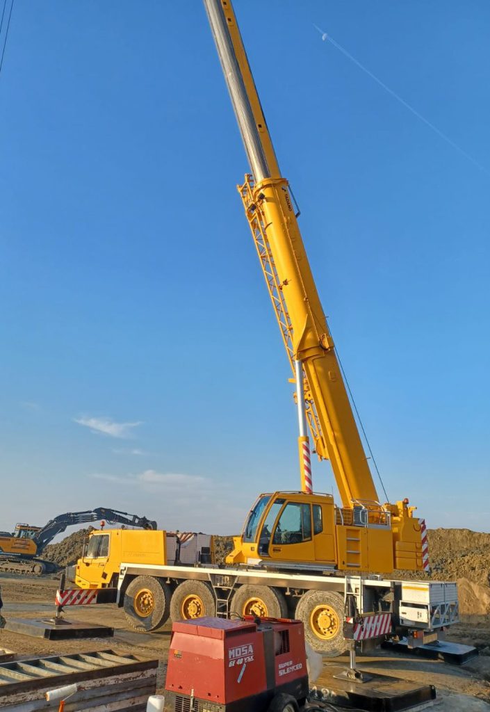 رافعة قياسية بذراع طوله 44 مترًا، مزودة بمكيف هواء في الكابينة العلوية، ذراع مزدوج،
